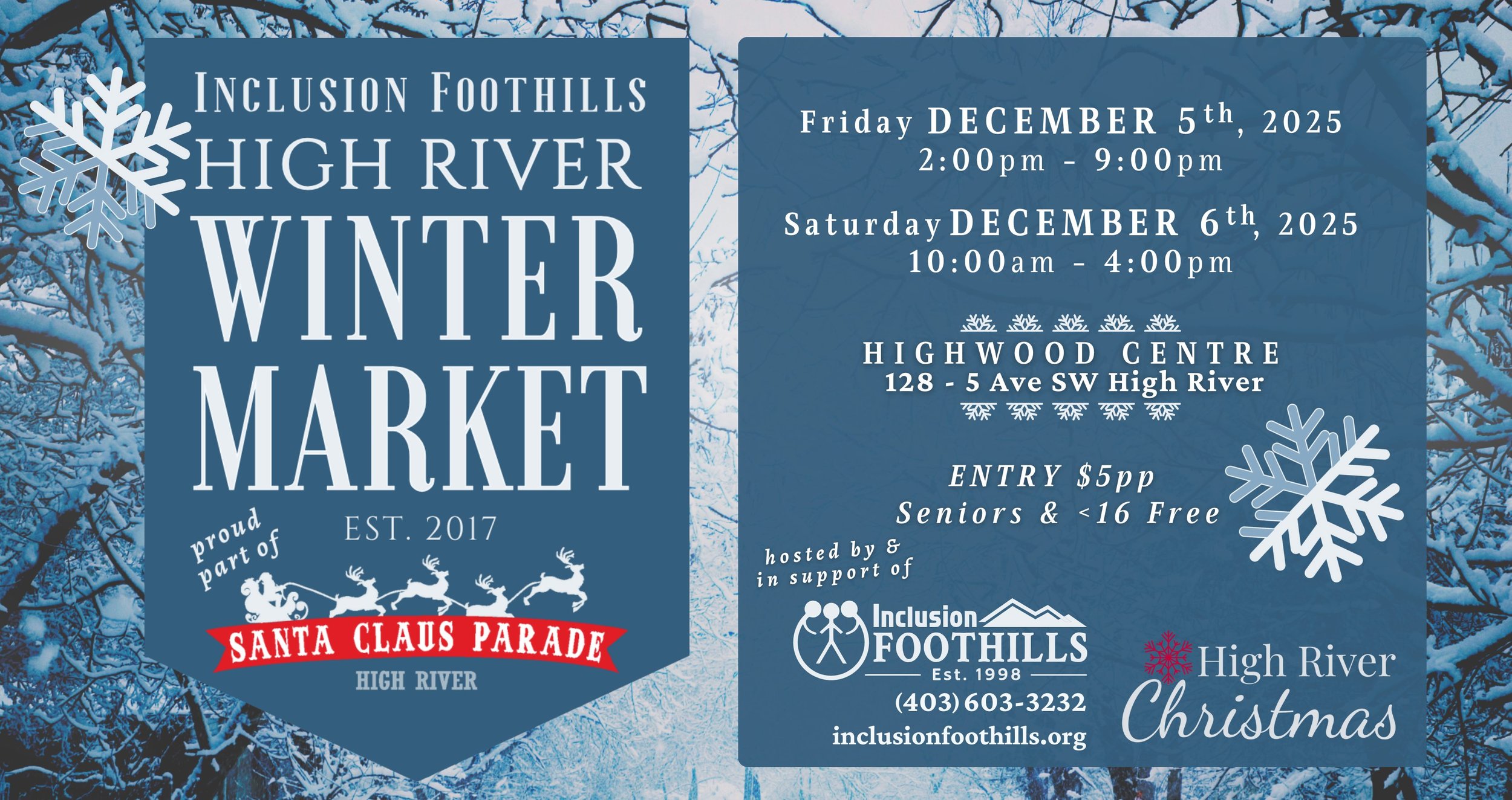 The Inclusion Foothills High River Winter Market is held each year at the Highwood Centre 128 – 5 Ave SW High River, AB.