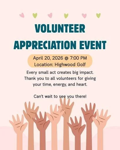 If you’re a volunteer, you’re warmly invited to attend. Please RSVP using this link - 2026 Volunteer Appreciation Event RSVP – Fill out form