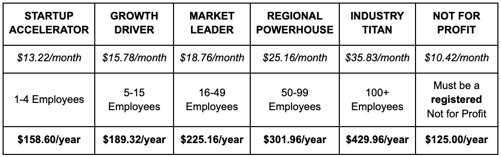 Our yearly membership fee is based upon your number of employees: